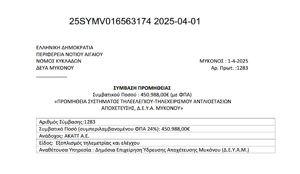 Η Δ.Ε.Υ.Α Μυκόνου υπέγραψε νέα Προγραμματική Σύμβαση με την Αναπτυξιακή Προοπτική Α.Ε. για την Δημοπράτηση και την Υλοποίηση δύο (2) μεγάλων και σημαντικών έργων για την ν. Μυκόνου.